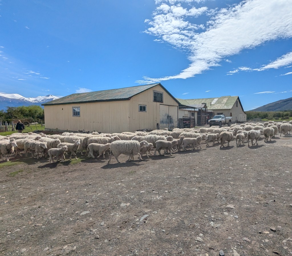 It may be a slow pace for travellers. Life in Estancia is very busy and is full of errands for the staff. Nibepo Aike Estancia is one of the very few that remains functional, with sheep, cattles, horses, chickens in a beautiful and peaceful landscape. The grass is greener. The lakes are clearer. The snow-capped mountains are changing daily with the snow-cap shrinking daily with Spring arriving in this part of the world. There is a short hill that the guests can walk up to appreciate the ranch. Imagine Heidi in the Swiss Alps, that is the kind of life – the freshly produced milk from the cattles, the sheep, the sheep shearing and the scenic landscape. We participated in a ranch day with a tour guide. We had a chance to milk the cow. To keep us safe, the hind legs of the cow had to be tied for our milking. The cows produce less milk in the Estancia than those milked by the machines in cities. I am convinced the milk tastes better when the cows are more relaxed in the Estancia. In the morning, hundreds of sheep were let out of the barn. The sheep were in such a hurry to feed on the pasture that we often found the nearby shrubs caught their wool. We also had a chance to feed milk from a bottle to a baby sheep. A native know-it-all demonstrated the sheep shearing. I am not much of a lamb eater, but the whole lamb asado, as part of the ranch day, made the best lamb dish with its fragrance, its tastes, and its warmth.