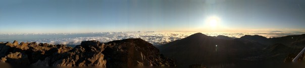 The sunrise at Haleakala summit was otherworldly beautiful. We were there an hour before sunrise, when the sky was dark and full of stars. It was cold; and was much colder with the windchill. The crater and an ocean of clouds stood between us and the horizon. We could not quite make them out as it was so dark. On the horizon, there was that strange combination of greenish, reddish, orange and yellow color, not dissimilar to Aurora. At that moment of sunrise, it was surreal and it was beautiful as the native started singing Hawaiian songs, then we gradually saw the crater and the cloud in between us and the sunrise.
