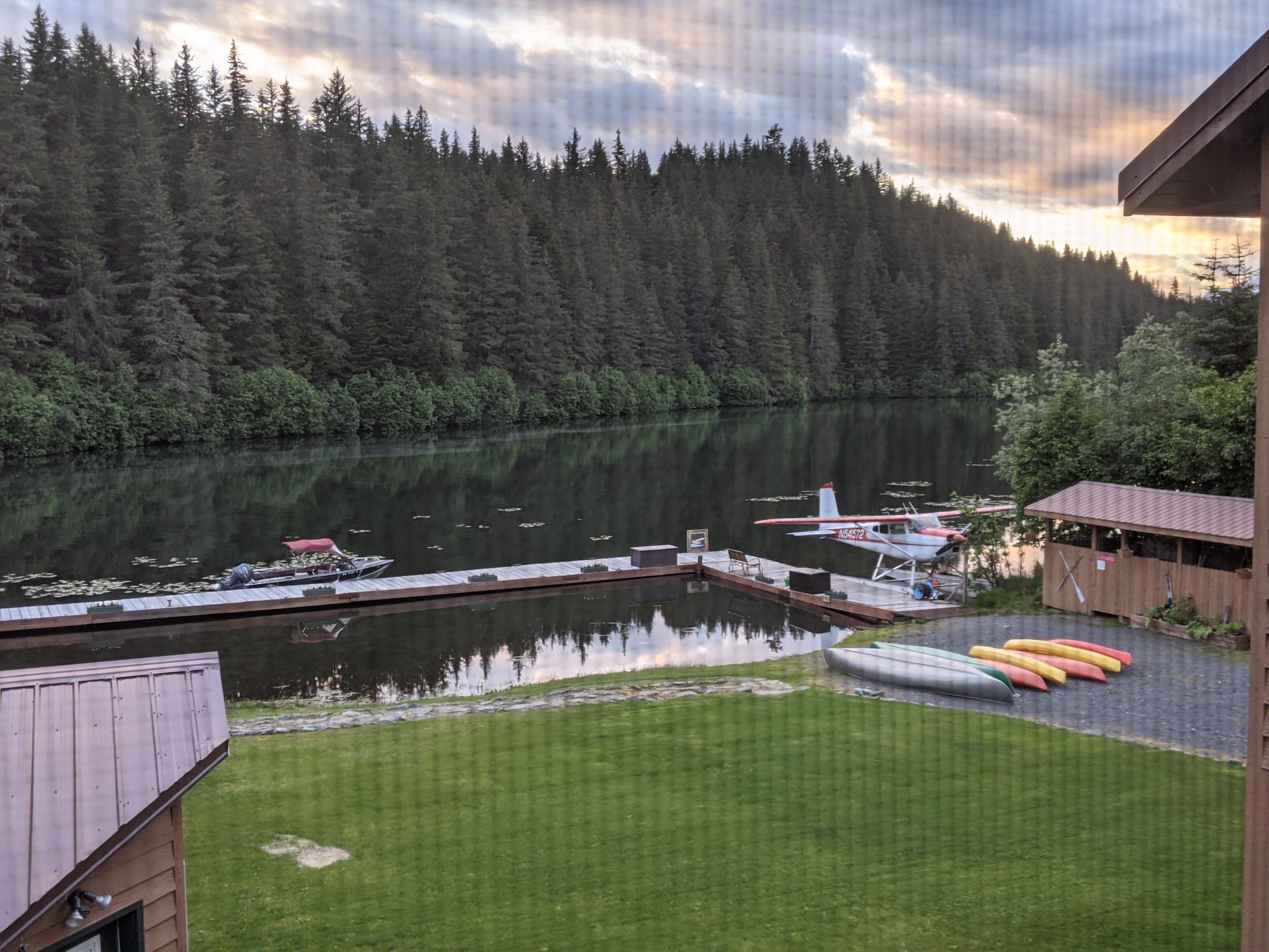 The Bear Lake Lodging inn keeper greeted us as we arrived at the Bear Lake Lodging in the late hours. The innkeeper was a black woman, and we were a bit surprised. In our mind, Alaskans are mostly caucasians. We later found out that she was from Virginia and she took good care of us with her friendly demeanor, her delicious breakfast, and her thoughtfulness to cater for special diet needs. We were tired after the Matanuska glacier hike and the long drive, we wanted a quick check in and a simple room to rest, yet the lodge seemed to be a place in the middle of nowhere. We were thrilled to discover a spacious 2-floor suite, a fully equipped kitchen, a full bathroom, a half bathroom and 2 TVs at our discretion. On top of all these, we had a gorgeous view of Bear Lake with a dense forest in the background, a launch dock with scores of kayaks and canoes ready for use, and an airplane for our admiration. The Bear Lake Lodge became one of the best, if not the best, accommodation in this trip. We would stay here for 4 nights with the innkeeper serving us fresh-made breakfast every morning and the opportunities to meet with fellow travellers.