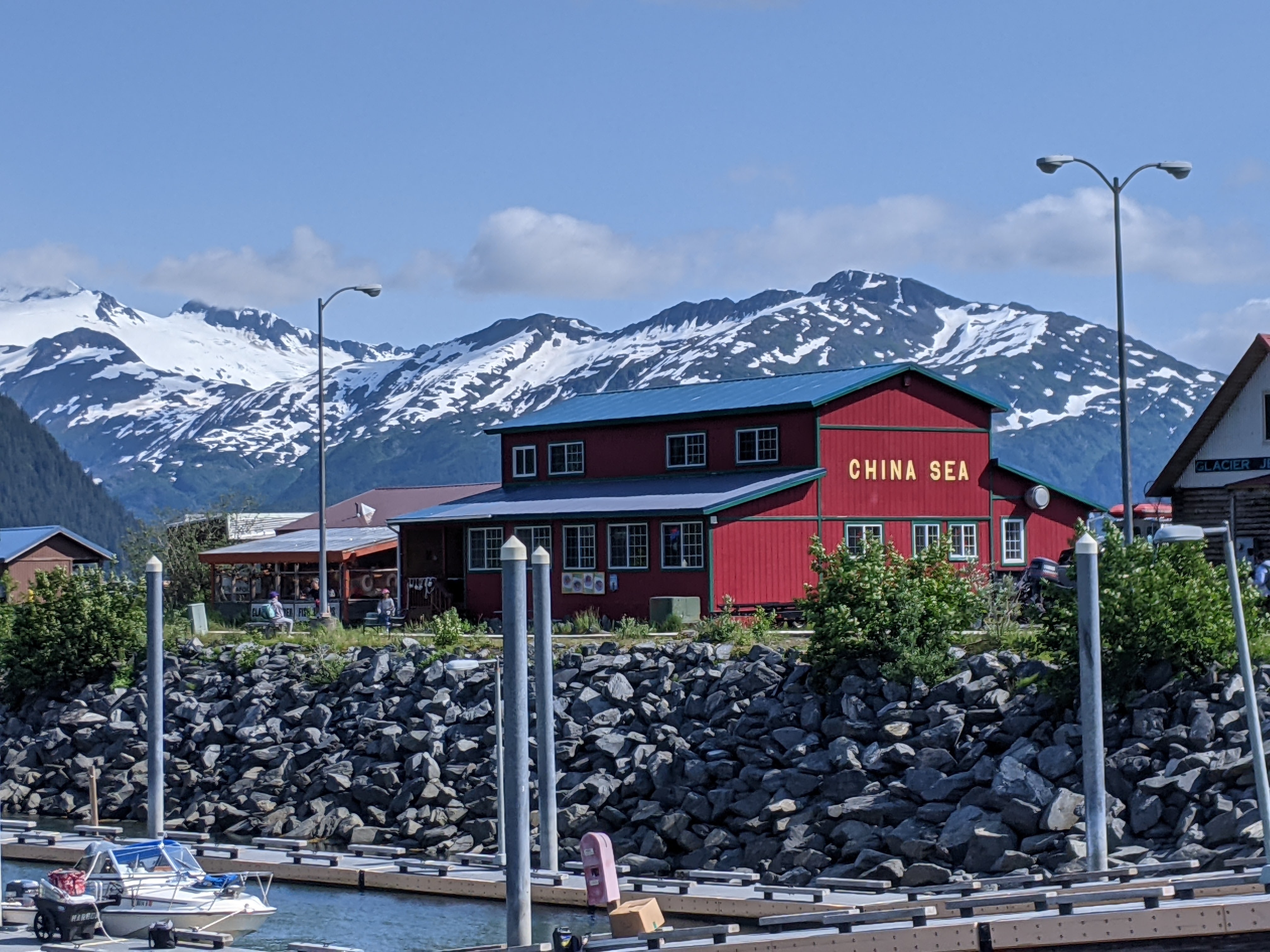 Whittier is the port of embarkation. There was a 10-minute Whittier tunnel that connected Girdwood and Whittier. It is among the longest highway tunnels serving both rail cars and all kinds of automobiles. Its traffic is controlled by a set of traffic lights and is operated on a strict schedule. If we missed our tunnel schedule, we would also miss the cruise ship schedule. We were the first in the queue with more than half an hour to spare. Driving through the long and dark tunnel for minutes and minutes raised some uneasiness close to a sense of anxiety. Our relief was apparent when we literally saw the light at the end of the tunnel. Whittier is a small town with eateries and shops along the pier; and there is one apartment building that houses the majority of the locals in the town. It was relaxing to stroll from one side to the other of the town;