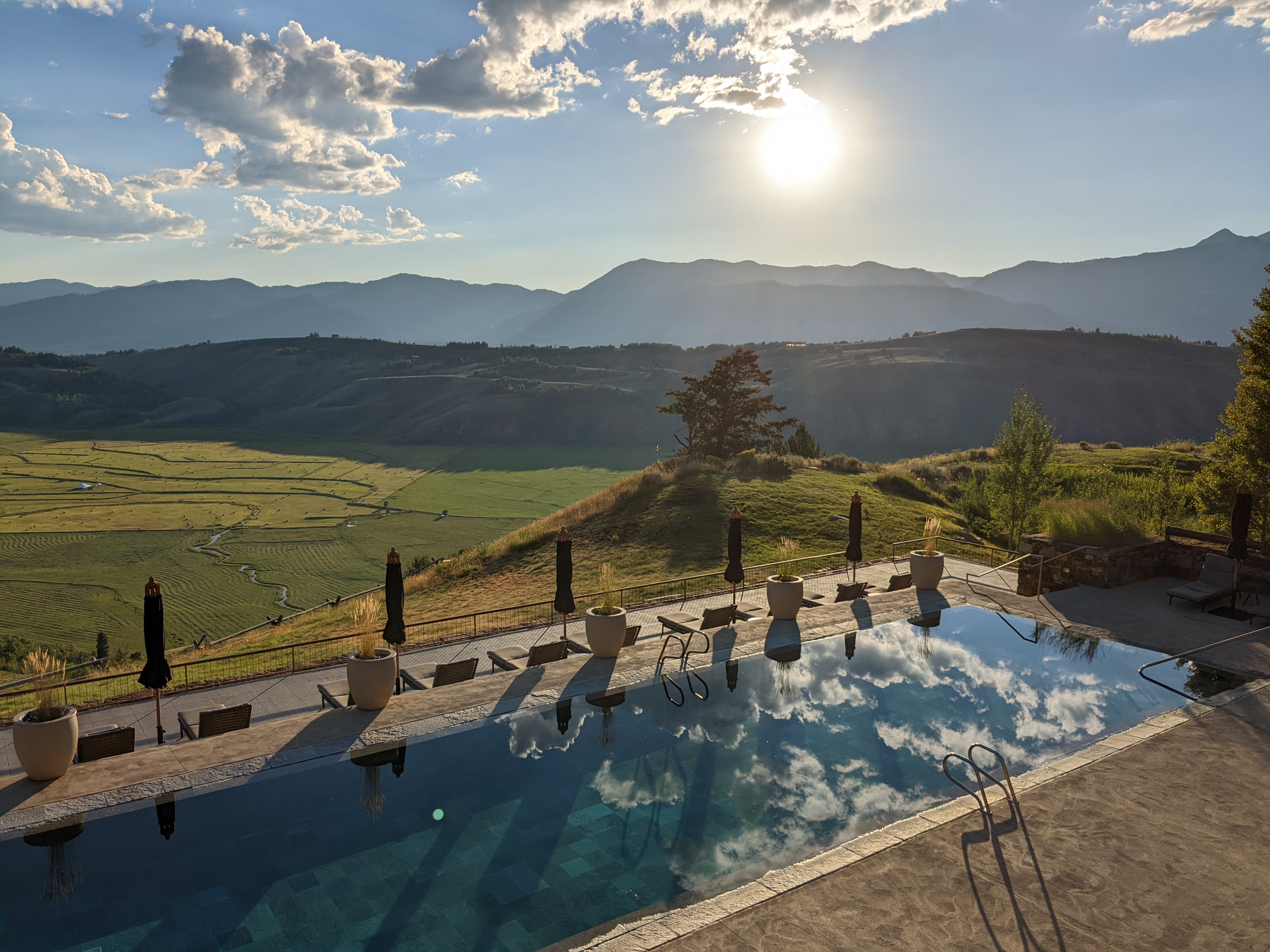 Amangani is an expensive hotel with fine dining, at the top of the hill, and offers a magnificent view overlooking the valley and mountain ranges miles away. There are not that many hotels with that breathtaking view. We watched both the sunset, a “special bear” appearance among the bushes, and enjoyed the dinner.