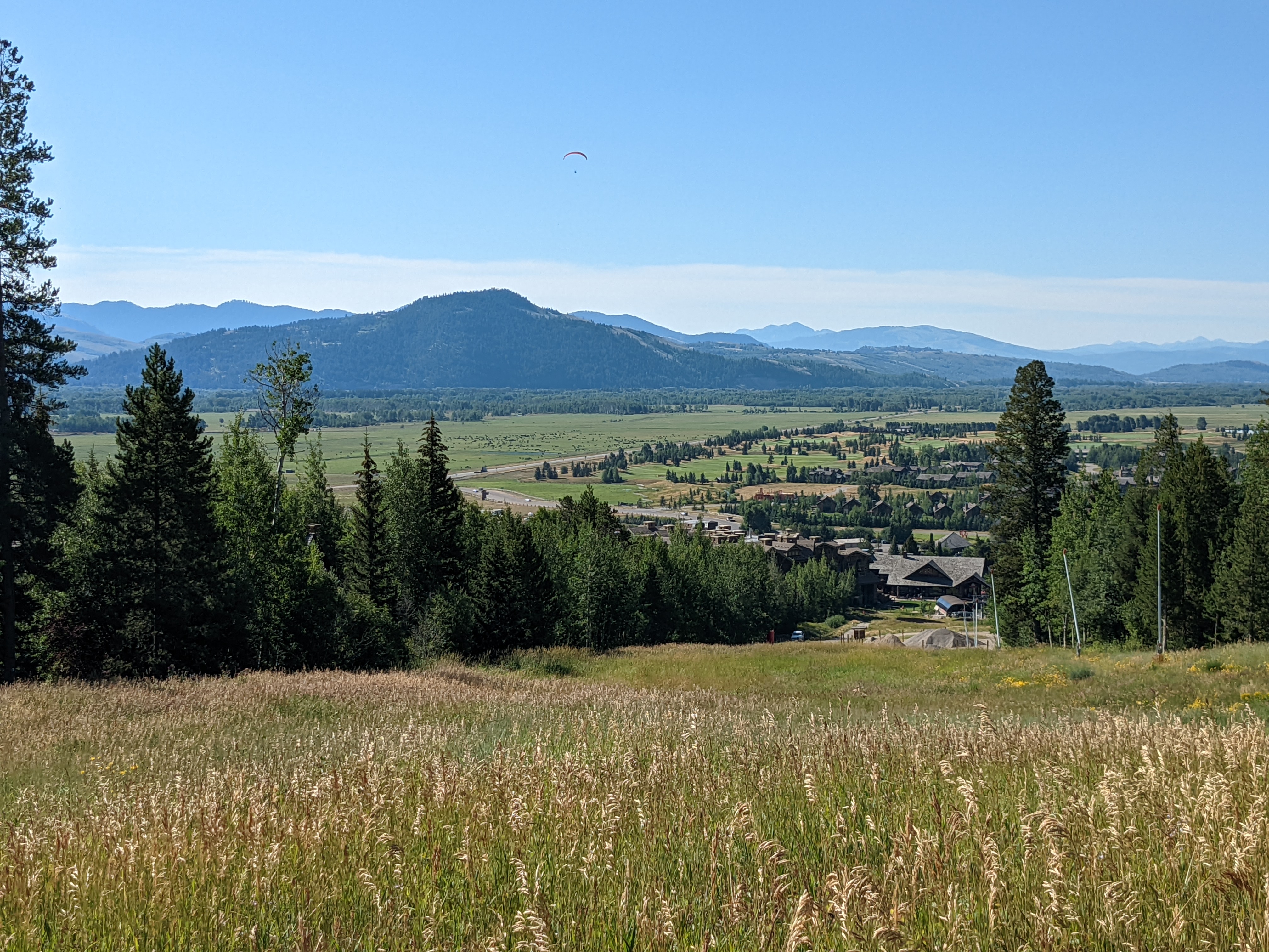 Our energy level was good. We jogged at the Valley Trail, along the right outside of the resort, to the Grand Teton NP. It is quiet, lush and beautiful, with a nice view of the Valley down below. The trail is along the ski lift, which remains open during the summer months, for the mountain bikers.