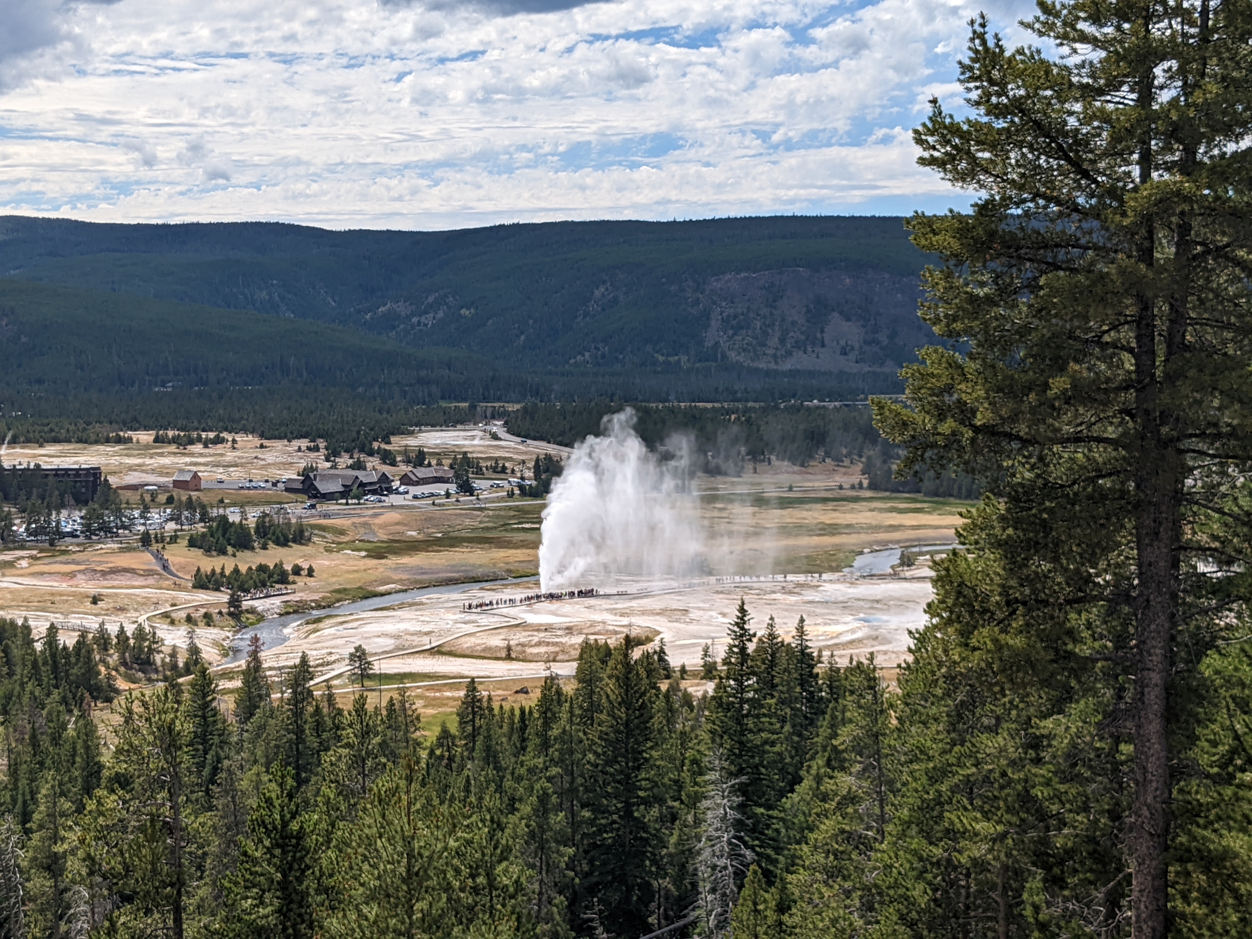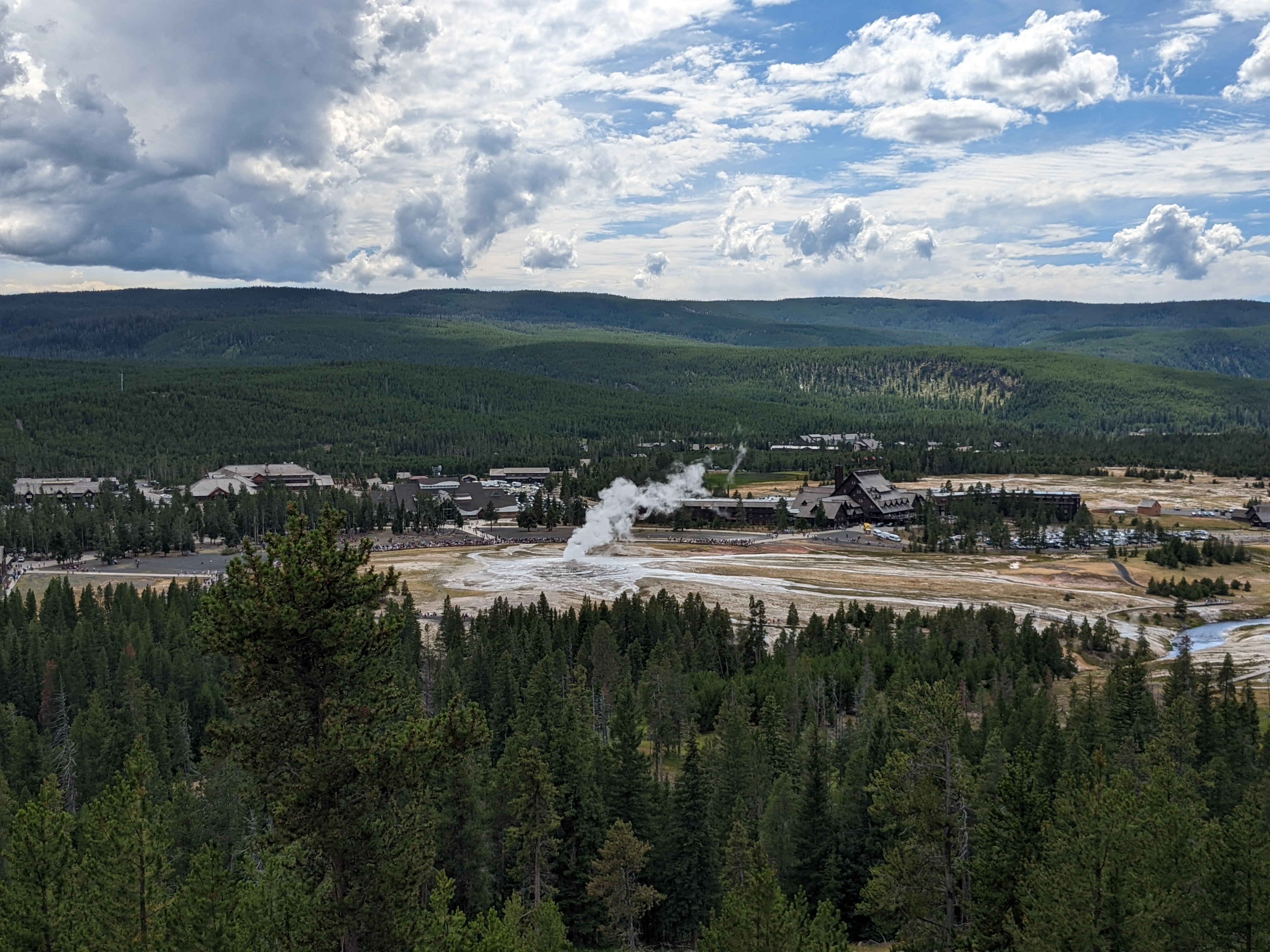 Yellowstone is about 2 to 3 hours of drive from the resort. There are various vista points along the way including turnouts and lake views.