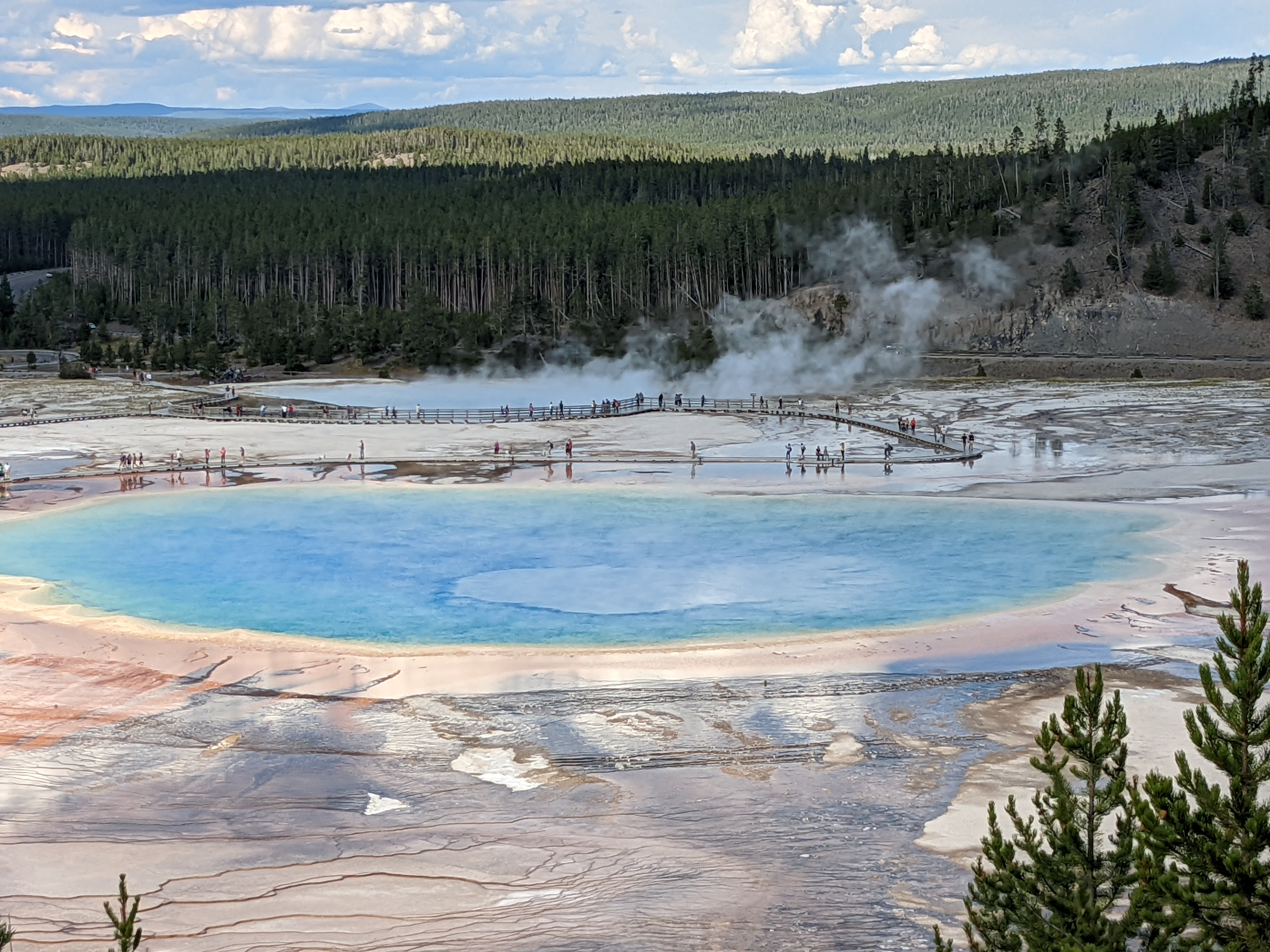 Grand Prismatic Spring is beautiful, but so crowded with people at the observation points. Our pictures turn out to be not even close to the pro shot typically found in postcards.