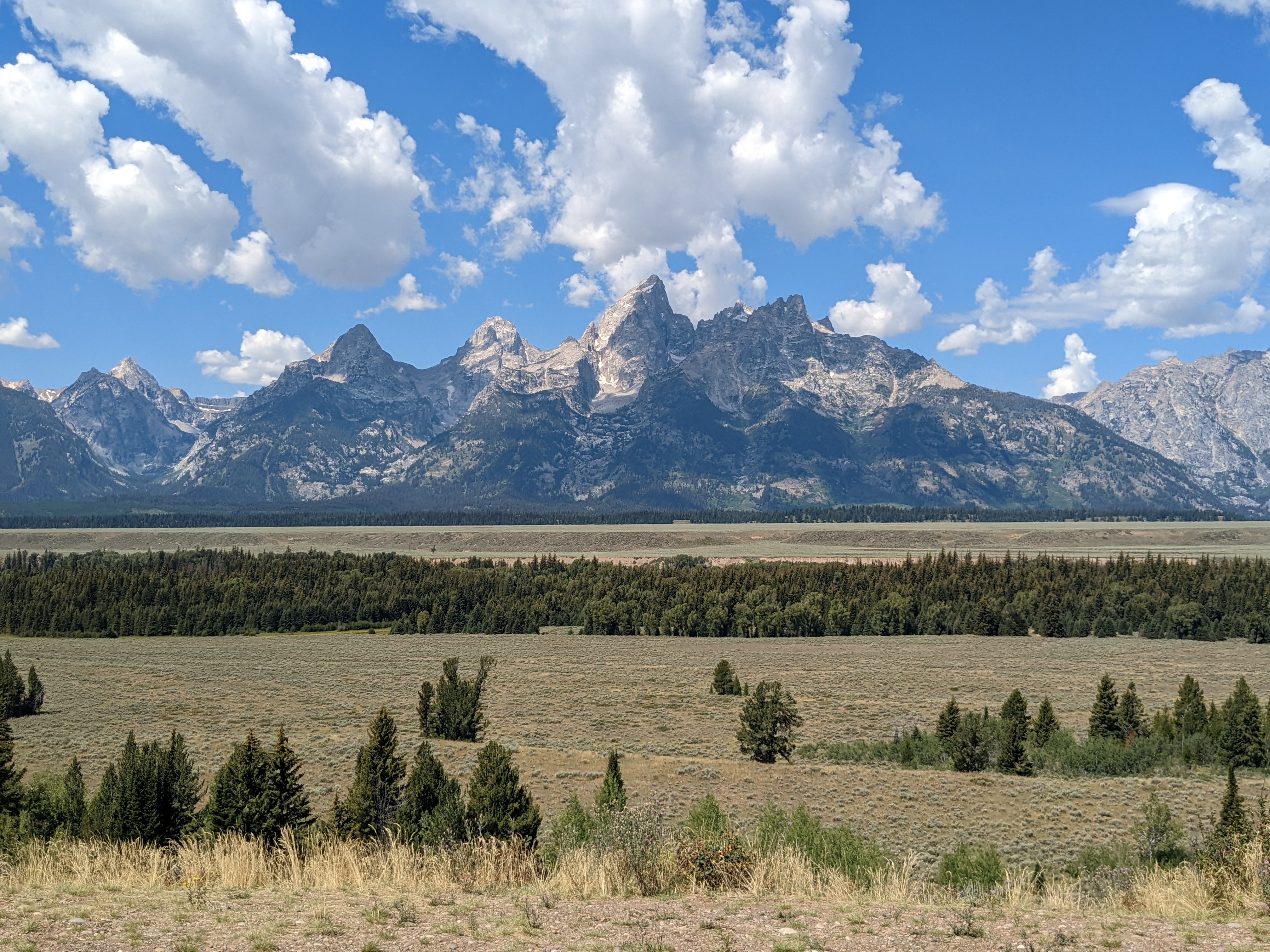 Glacier View turnout and Teton point turnout offer the grand view of Grand Teton and the Teton mountain ranges. Grand teton looks grand and distinct.