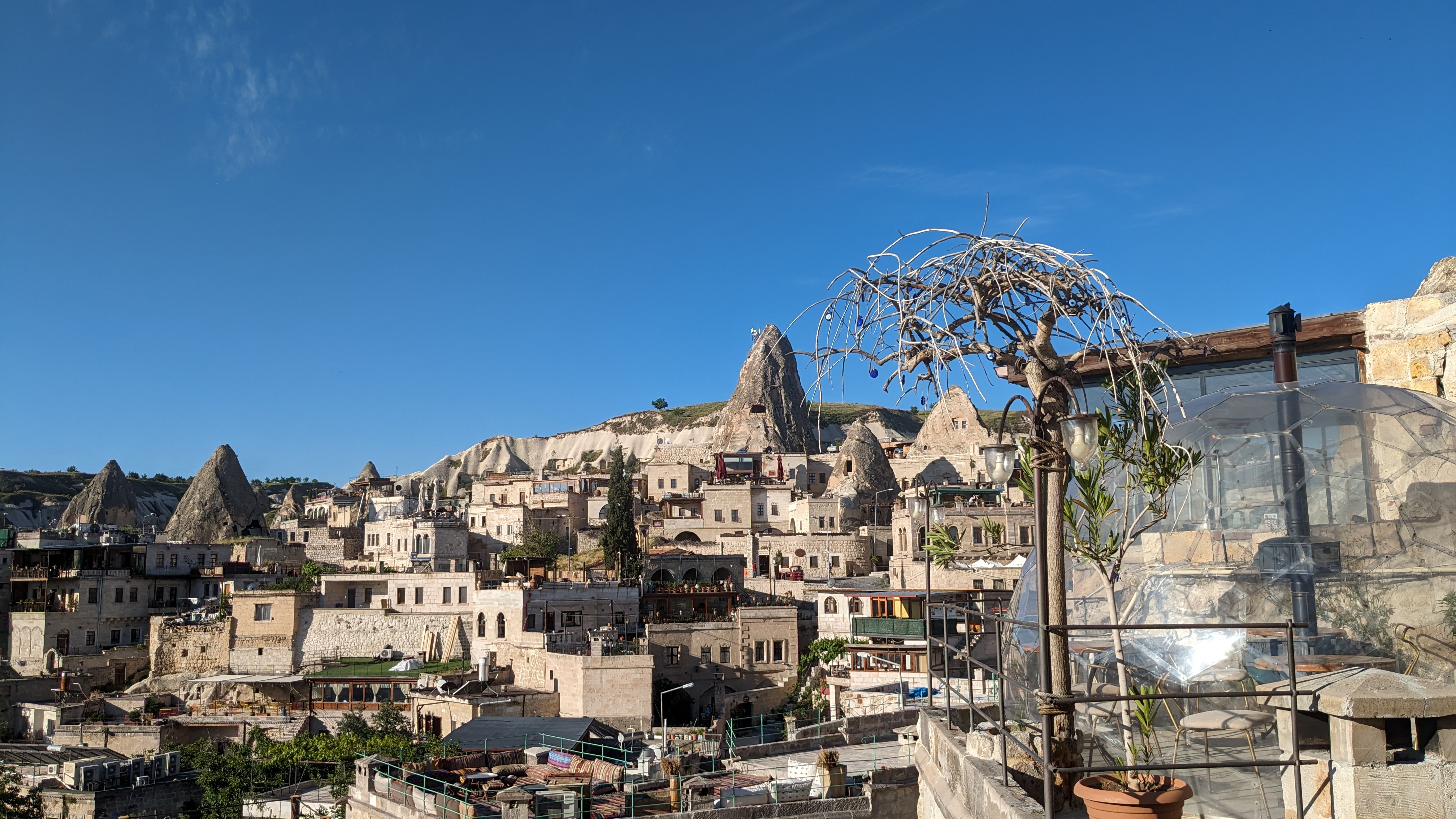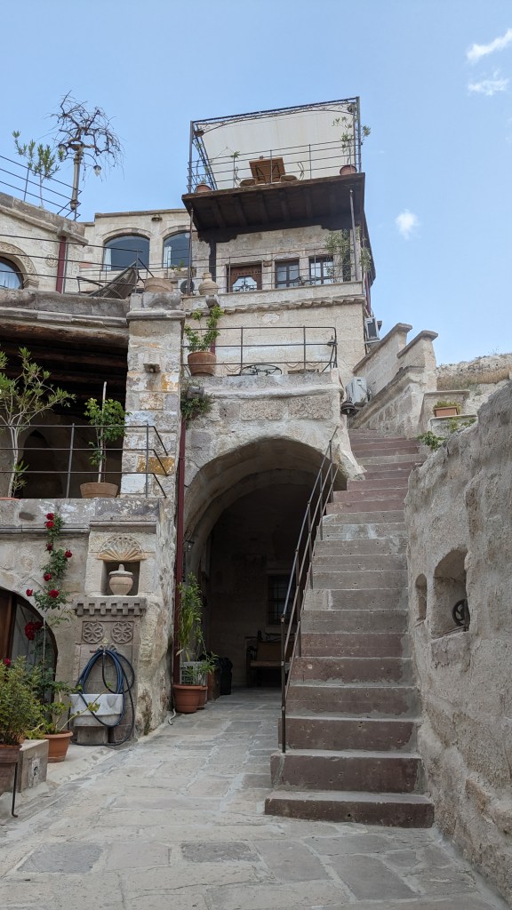 I appreciate the comforts of a hotel more than dwelling in a cave. However, when I had the opportunity to visit Cappadocia, I couldn’t resist the chance to stay in a cave hotel. Aydinli cave hotel in Goreme, located just an hour’s drive from Kayseri airport, was a great choice. Its convenient location makes it only a few minutes’ walk from the town center, where there is a bustling tourist hub with a variety of shops and restaurants, including options like Chinese and Korean cuisine.