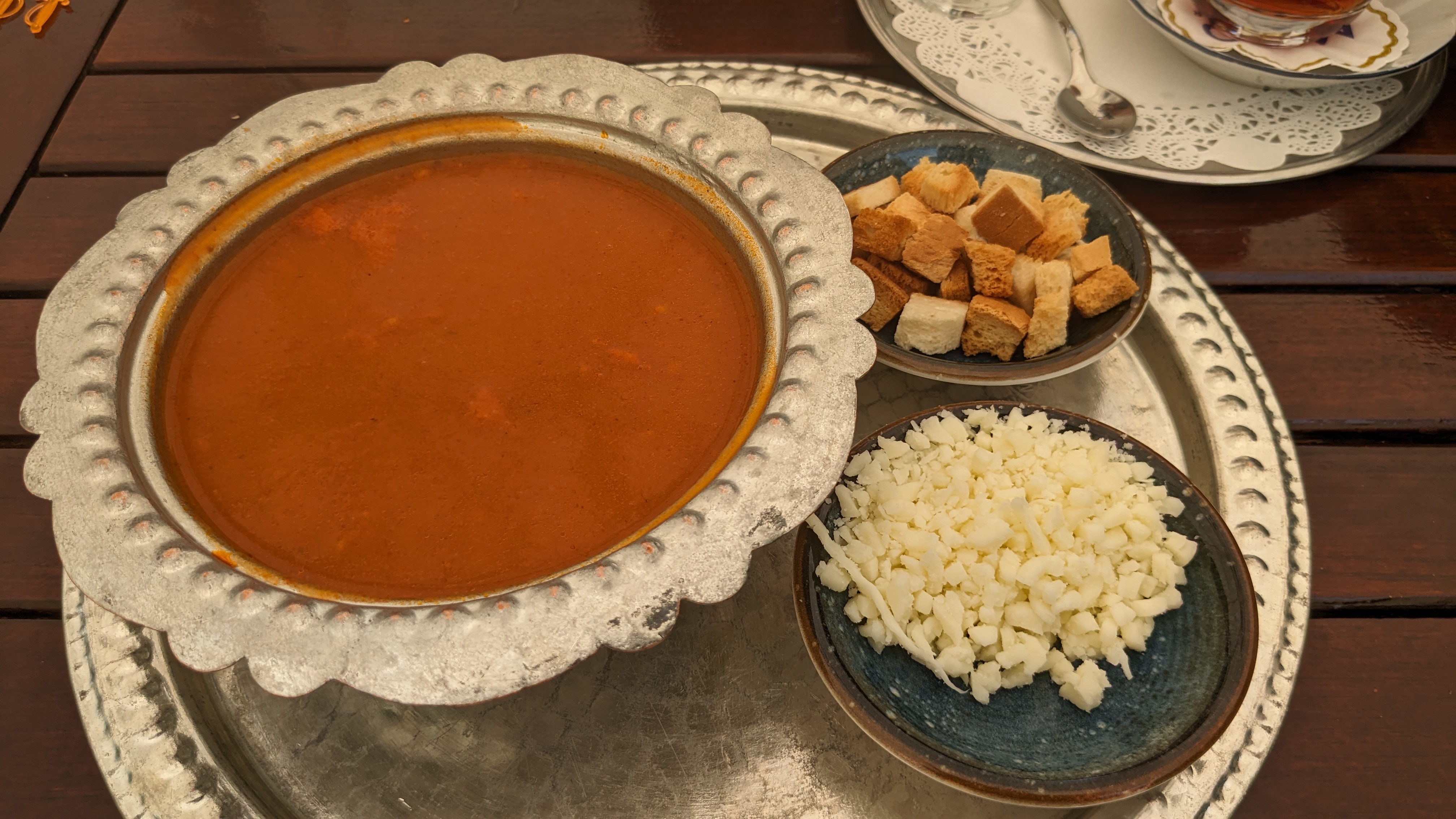 A delightful and delicious Turkish breakfast was served, a level above our room, at the top level of our cave hotel in Cappadocia. The breakfast was a Mediterranean feast for the senses. It offers a wide variety of fruits, vegetables, spices, sauces, butter, jams, and honey, all accompanied by freshly baked crispy buns and invigorating Turkish coffee or tea. We could also order additional omelets, Turkish pancakes and other breakfast items. Kaymak, a mix of cottage cream and honey, was the spread I look forward to every morning; and my daughter’s favorite item was Gozleme (Turkish Pancakes). The best part was that we got to enjoy this scrumptious meal while witnessing the residual spectacle of the hot air balloons dotting the morning sky above the surreal landscape. It was an enchanting sight that added an extra touch of wonder.