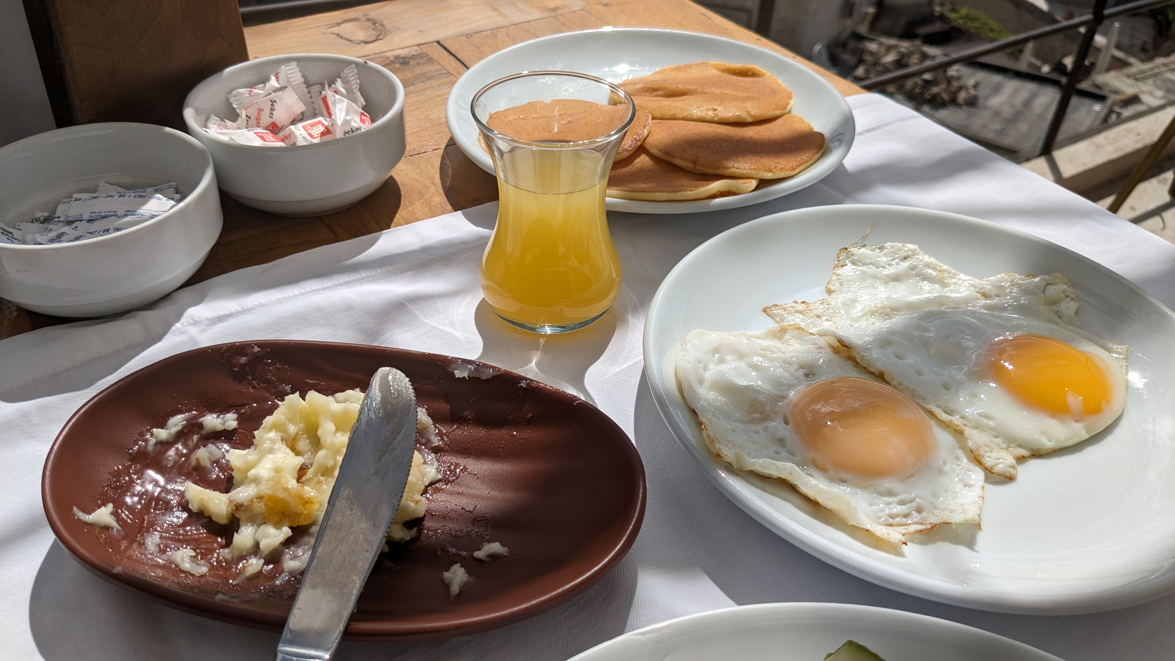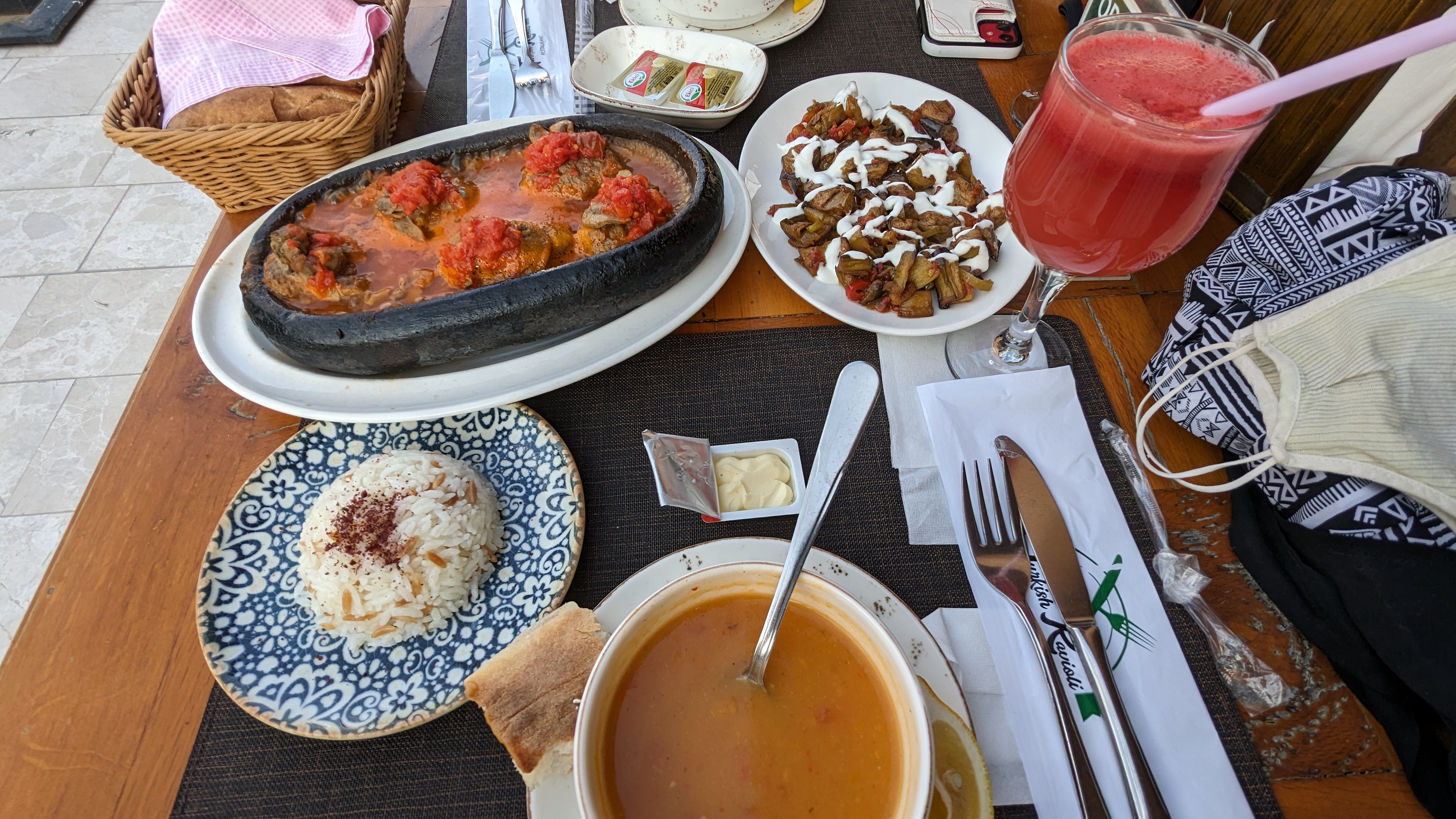The breakfast treats go to the Kaymak and the Gozleme. The server at the hotel breakfast made us spread by mixing Kaymak, the cottage cream, and honey. It is the best spread I have had on crispy buns and pancakes. The hot-off-the-stove Turkish Gozleme is the type of pancake to have every morning.