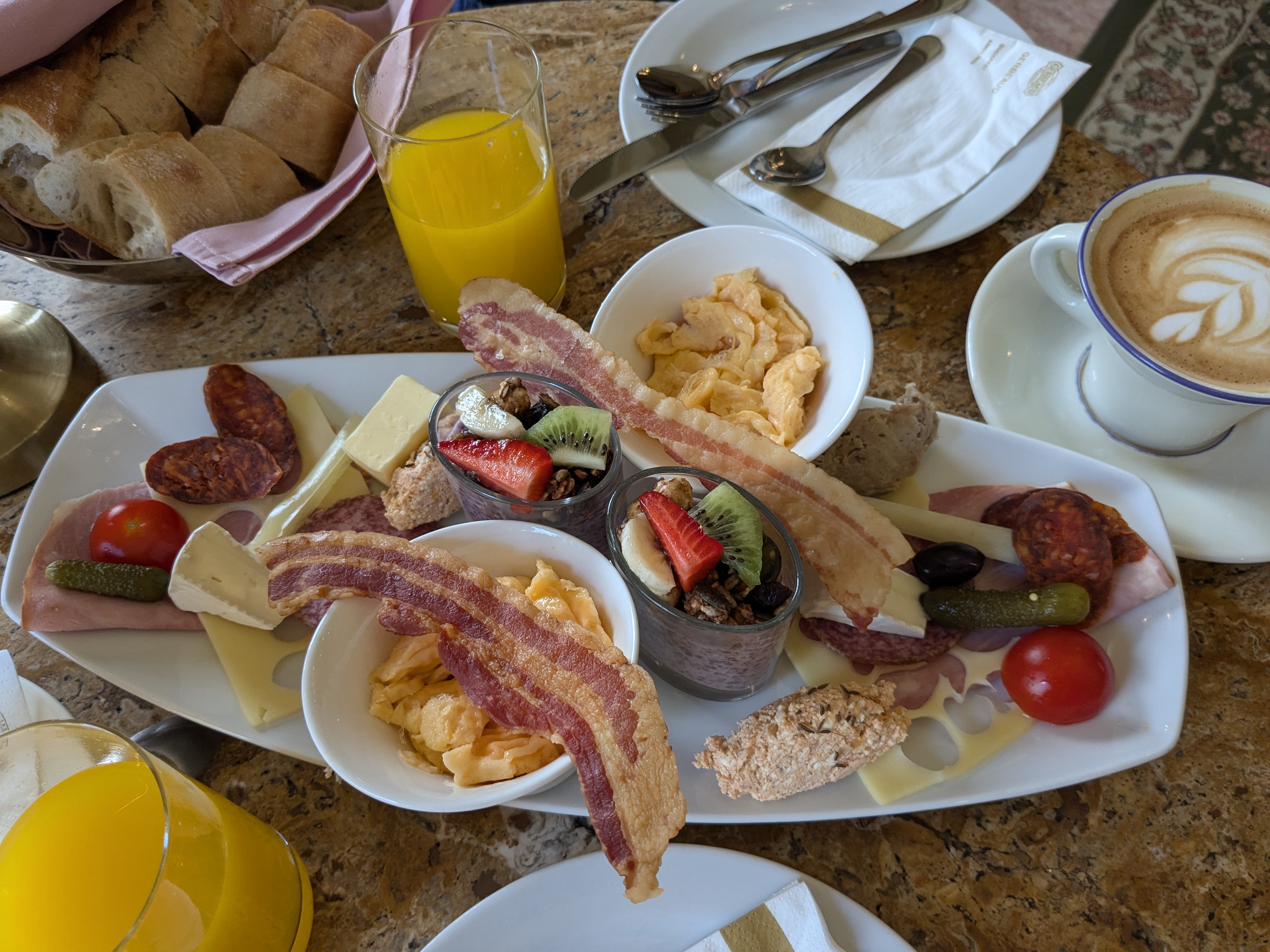 We started the day with breakfast at the beautiful Cafe Gerbeaud. Cafe Gerbeaud has a storied history since its creation in 1858, a meeting in Paris that decided the cafe succession, a change of regimes, and then a return in 1984. The breakfast, pleasing to the eyes and palate, lived up to its history. Their sweets made wonderful edible souvenirs. We ended up getting a few boxes of Cognac Cherry bonbons. The Gderbeaud filled cat’s tongue chocolate would be another great souvenir choice.